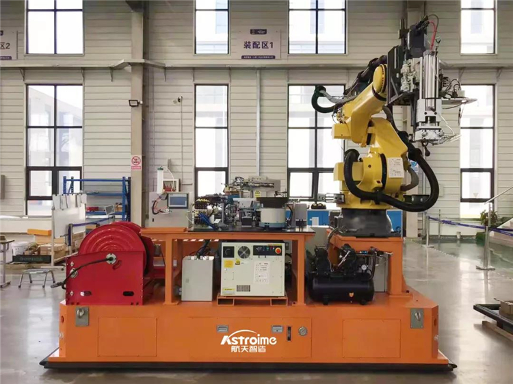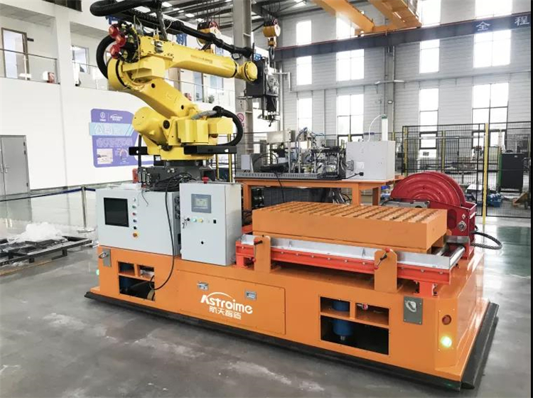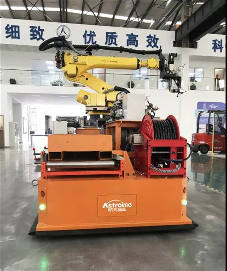 航天智造打造復合型重載AGV適用于風電行業葉片根部雙頭螺栓的安裝與檢測,實現了葉片自動識別型號、自動夾取螺栓、自動進行O型橡膠密封圈安裝和涂抹螺紋膠、擰緊作業、設備扭矩數據互通等智能化。