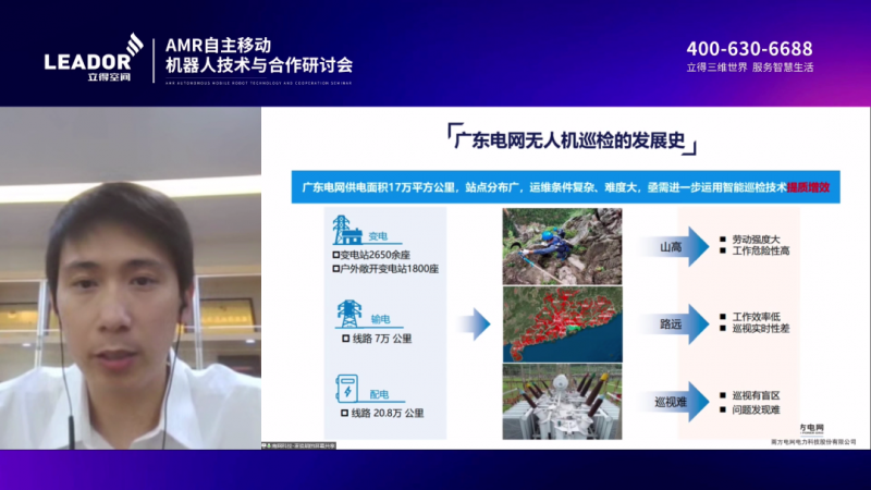 南方電網電力科技公司機器人事業部副總經理麥曉明分享了電網高精度三維建模與數據融合技術的無人網格化巡檢系統與應用。七騰科技公司企劃總監張喆介紹了石油危化行業的機器人應用。海神機器人CTO王忠輝、宇樹科技四足機器人高級產品經理李峰等介紹了各自與立得空間的合作經歷與業務成果,為產業發展帶來了應用和服務新思路。
