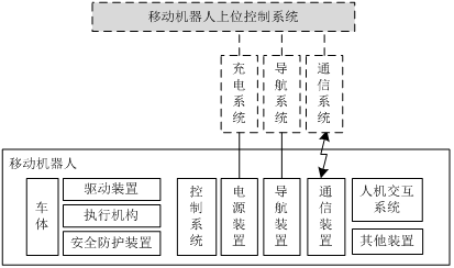 工業(yè)應(yīng)用移動機器人主要由車體、驅(qū)動裝置、執(zhí)行機構(gòu)、安全防護裝置、控制系統(tǒng)、電源裝置、導(dǎo)航裝置、通信裝置、人機交互系統(tǒng)及其他系統(tǒng)等組成。